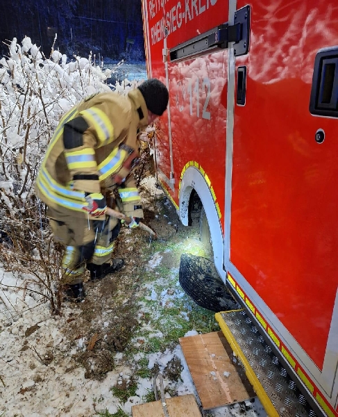 In der Nacht von Sonntag auf Montag kam es aufgrund des starken Schneefalls zu einem Einsatz in Alefeld. Während eines laufenden Rettungseinsatzes war ein Rettungswagen in einer verschneiten Hauszufahrt steckengeblieben und konnte seine Fahrt nicht fortsetzen. Nach dem Eintreffen an der Einsatzstelle wurde der Bereich zunächst abgesichert, um die Sicherheit aller Beteiligten zu gewährleisten. Anschließend konnte der festgefahrene Rettungswagen mithilfe von Hebekissen aus seiner misslichen Lage befreit werden.